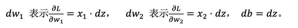 step2:使用公式计算dw,db dw1=x1∗dzdw2=x2∗dzdb=dz
